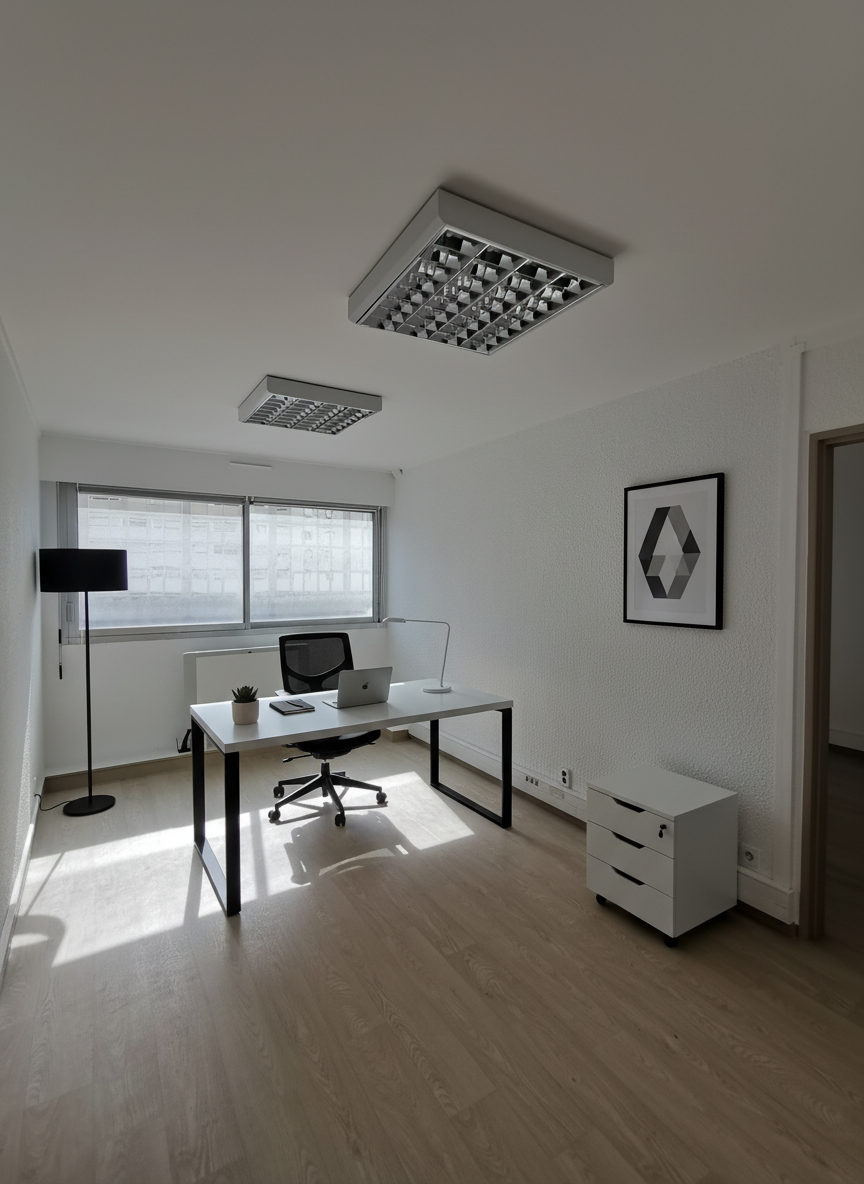 Dans un immeuble de bureaux, surface d'environ 95 m² (traversant) au 3ème étage avec ascenseur, composée d'un hall d'acceuil, de 3 bureaux, d'un grand plateau open space, d'un bloc sanitaires et d'une salle réseau.