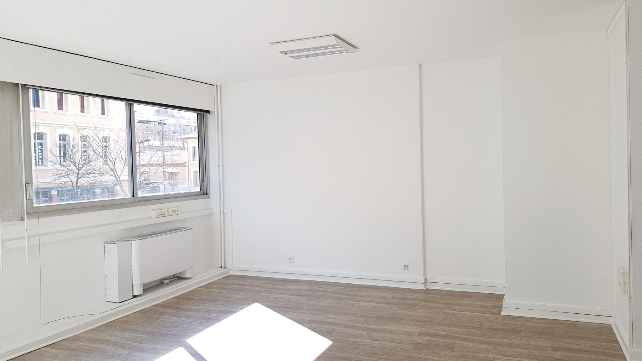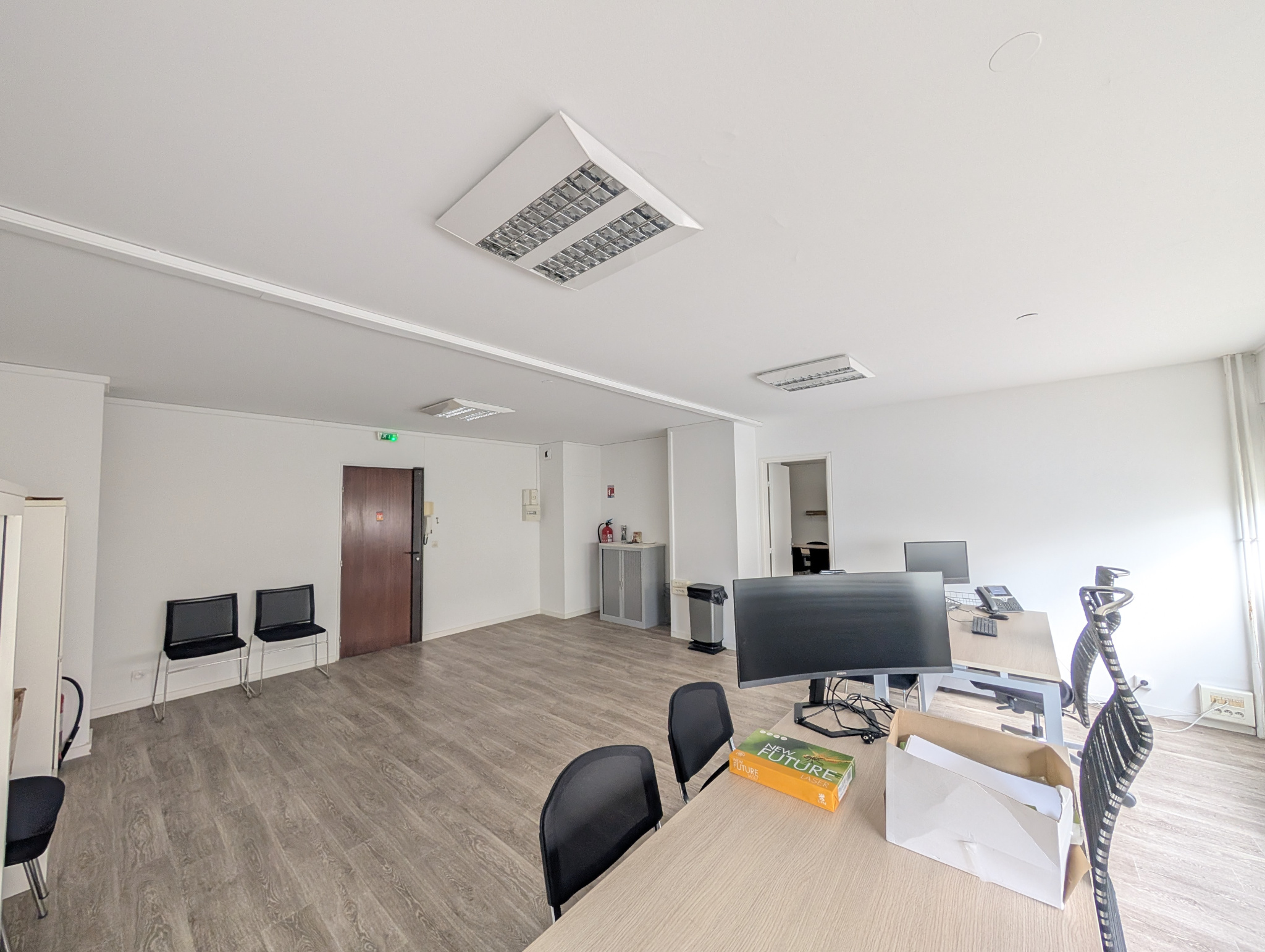 Dans un immeuble de bureaux, surface d'environ 50 m² au 1er étage avec ascenseur, composée d'un bureau, d'un grand plateau open space et de sanitaires.