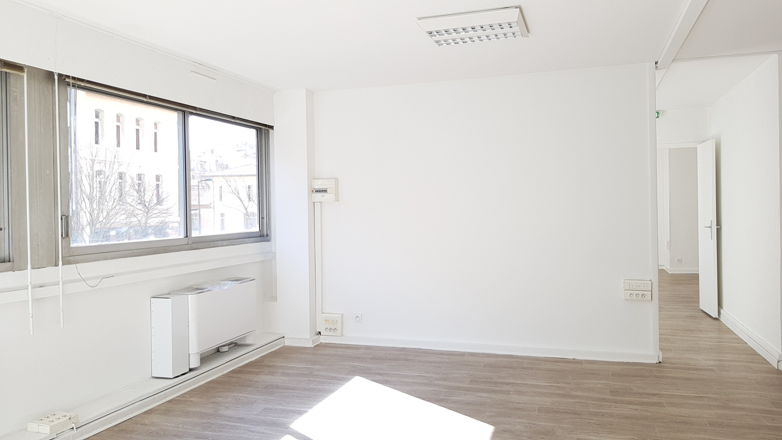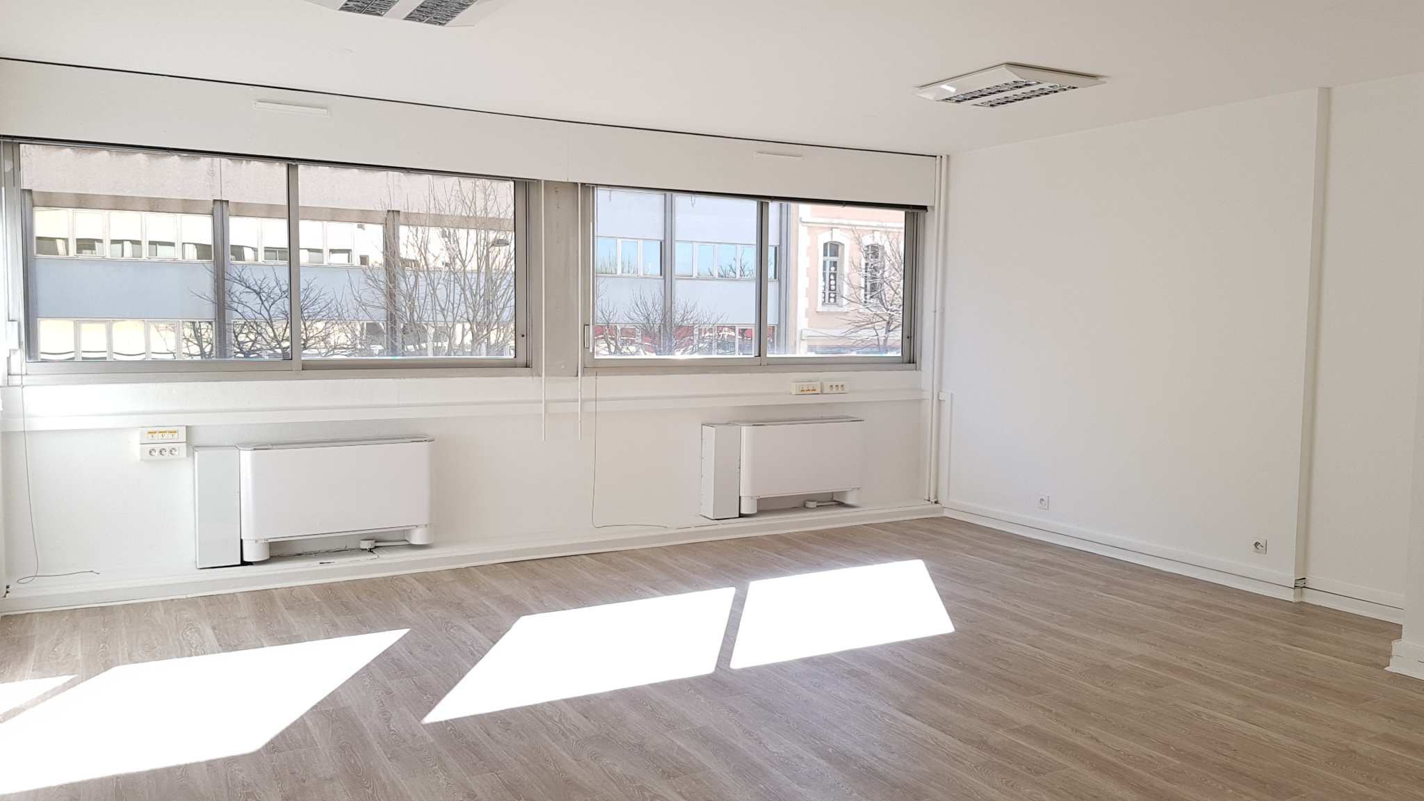Dans un immeuble de bureaux, surface d'environ 124 m² au 1er étage avec ascenseur, composée d'un bureau, de 3 grands plateaux open space et 2 blocs sanitaires.