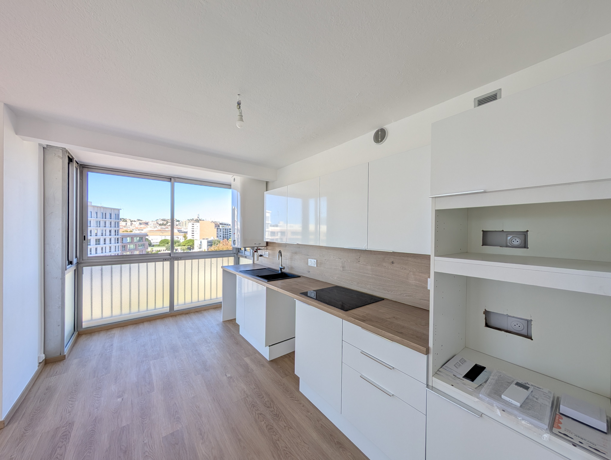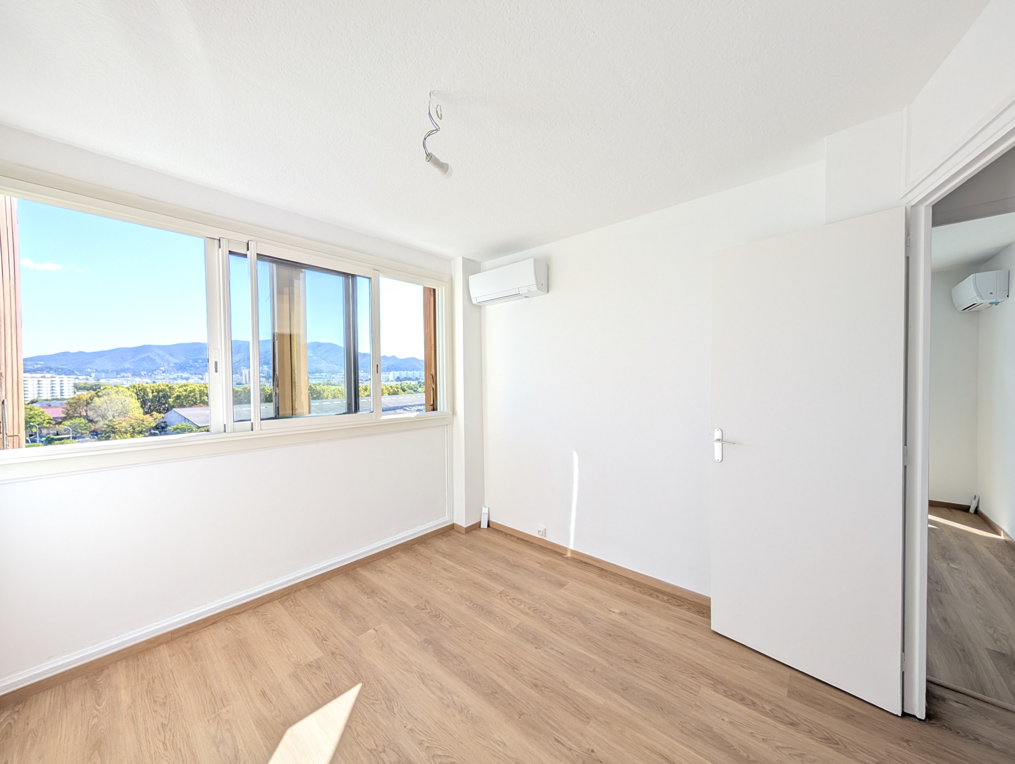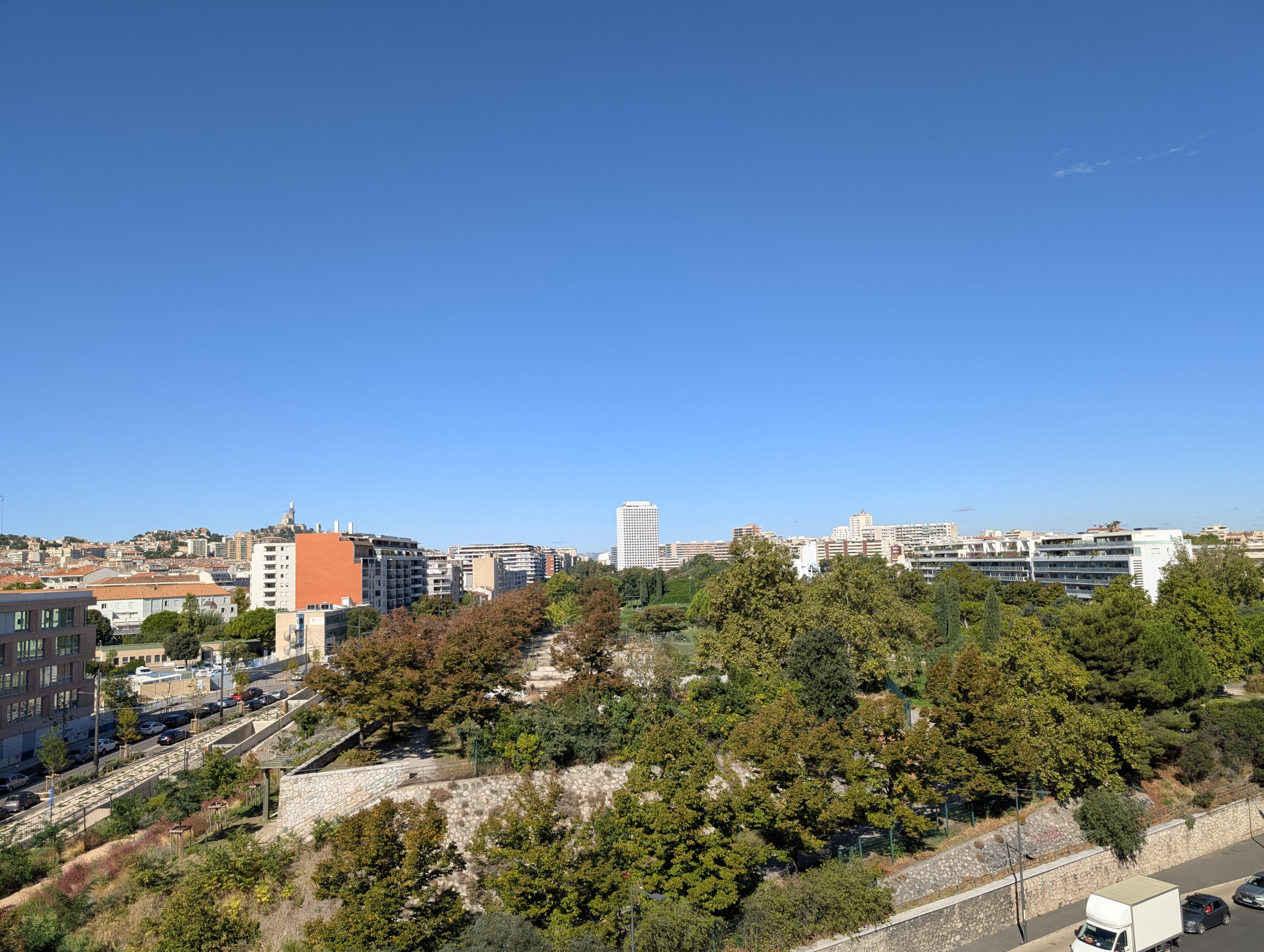 Très belles vues dégagées sur les massifs sud de la ville de Marseille et sur Notre Dame de la Garde et le Parc du 26ème centenaire.