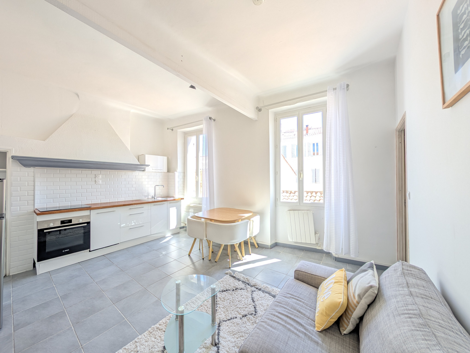 Au 197, rue d'Endoume (Secteur Bompard), beau T2 en troisième étage, entièrement rénové et MEUBLE avec goût. Il se compose d'une pièce principale avec cuisine ouverte aménagée toute équipée, d'une chambre, ces deux dernières pièces donnant côté cour avec une belle vue sur Notre Dame de la Garde, d'un grand dréssing indépendant et d'une salle d'eau avec douche, WC et meuble Vasque.